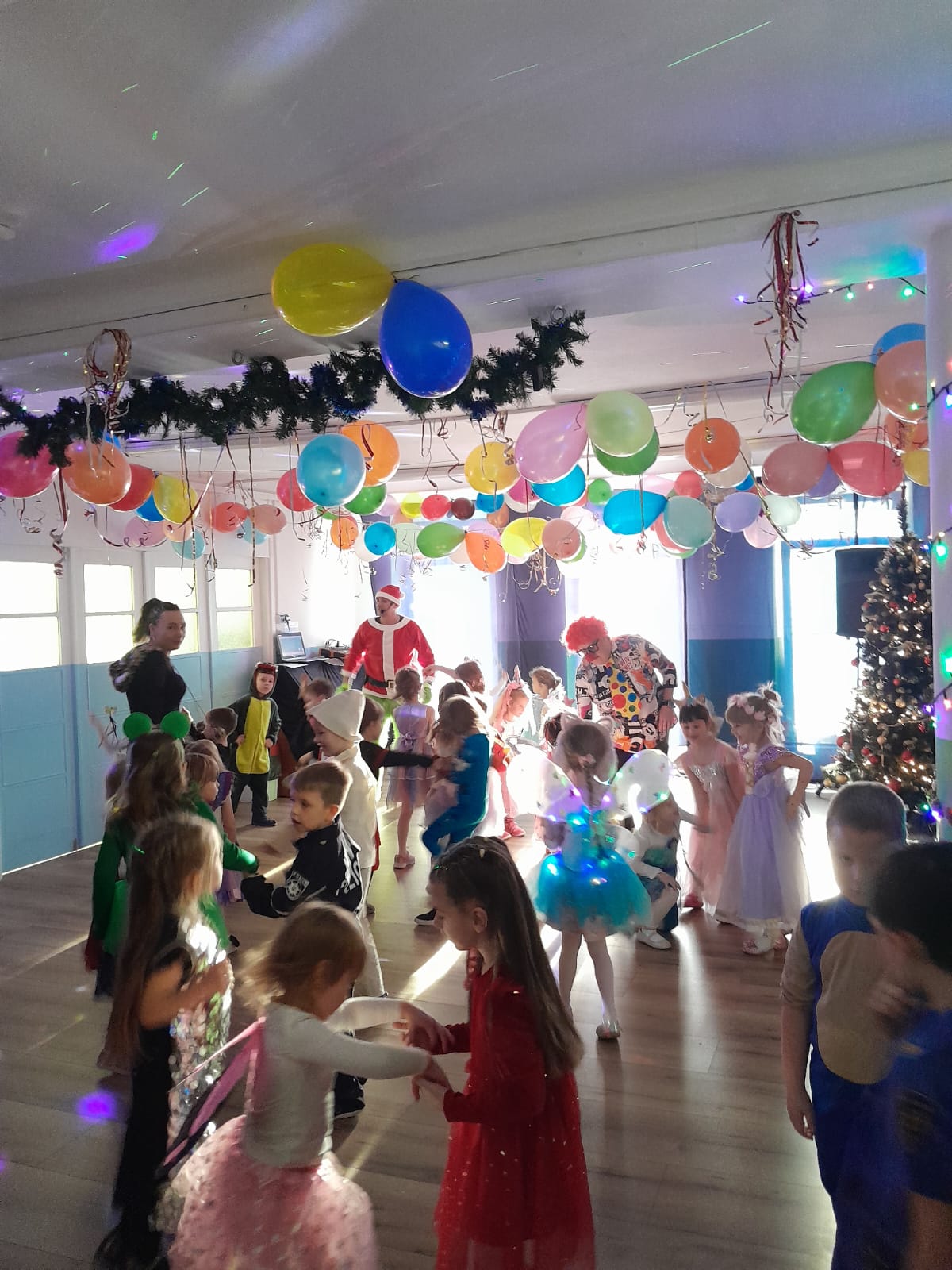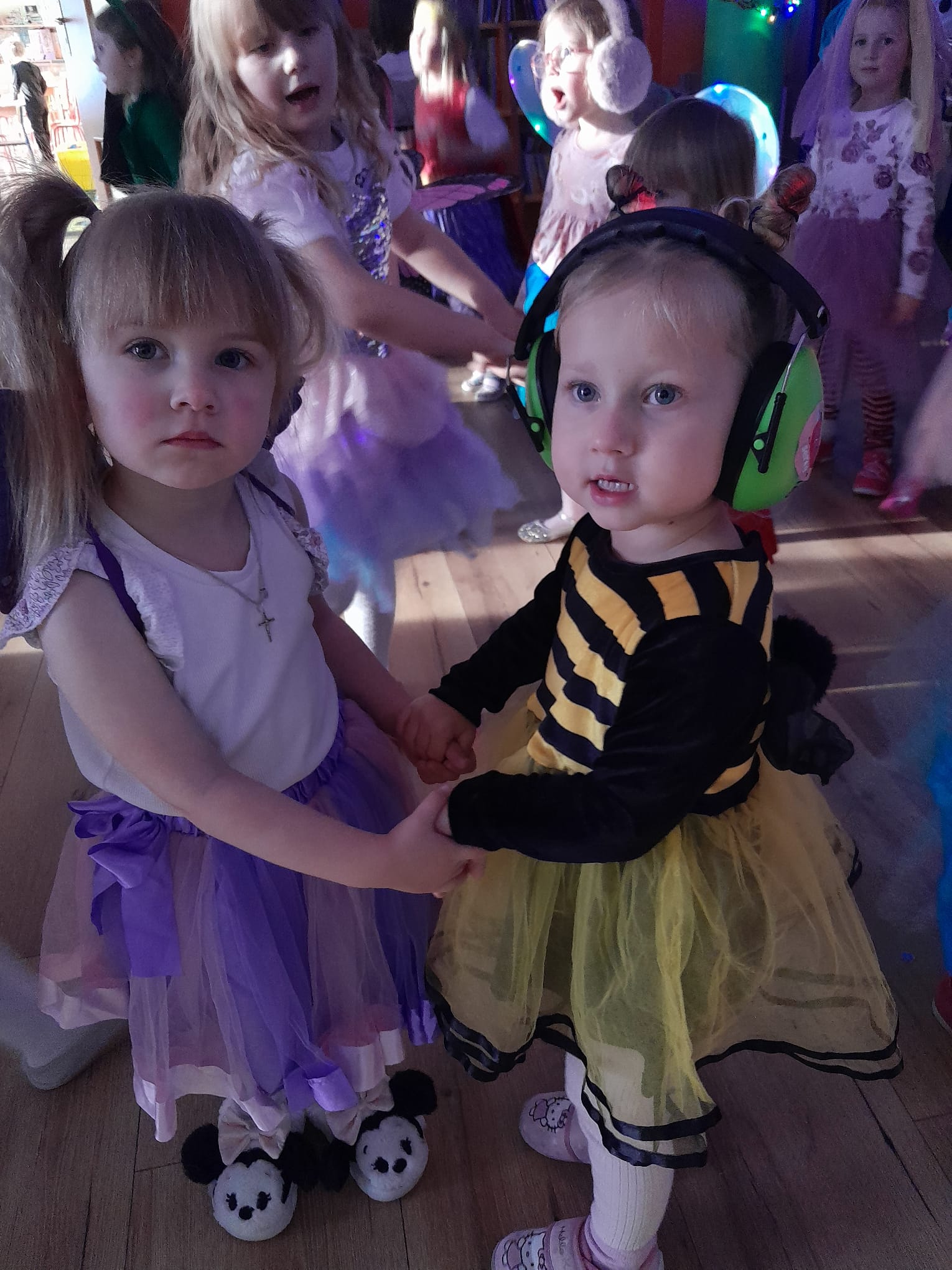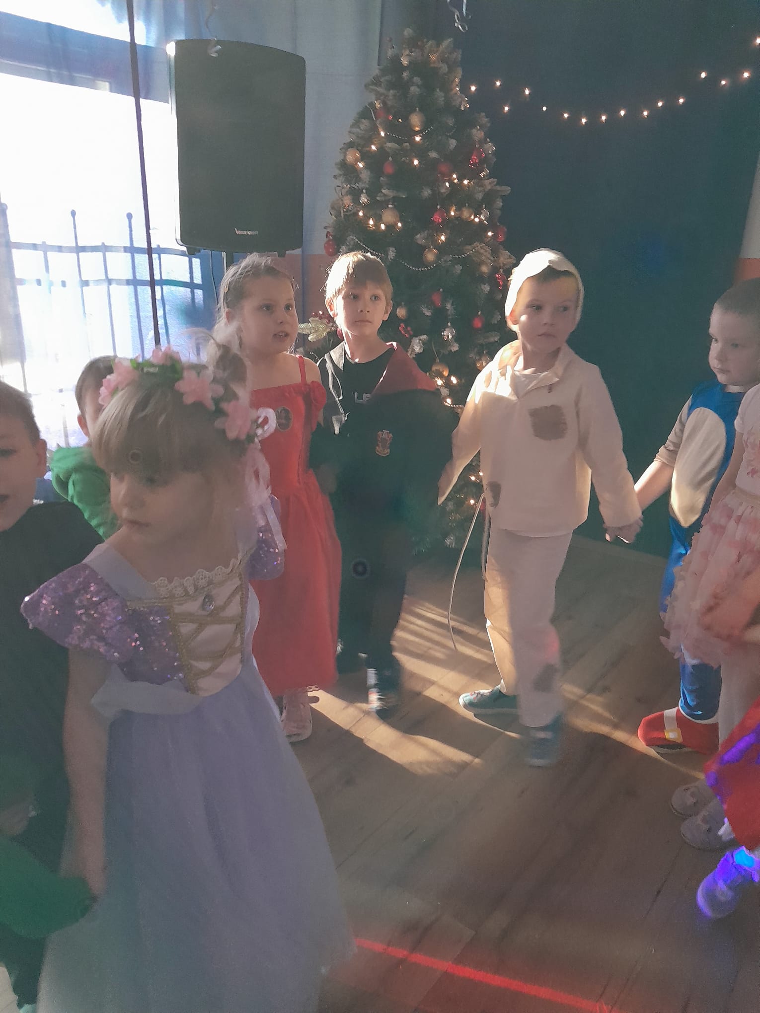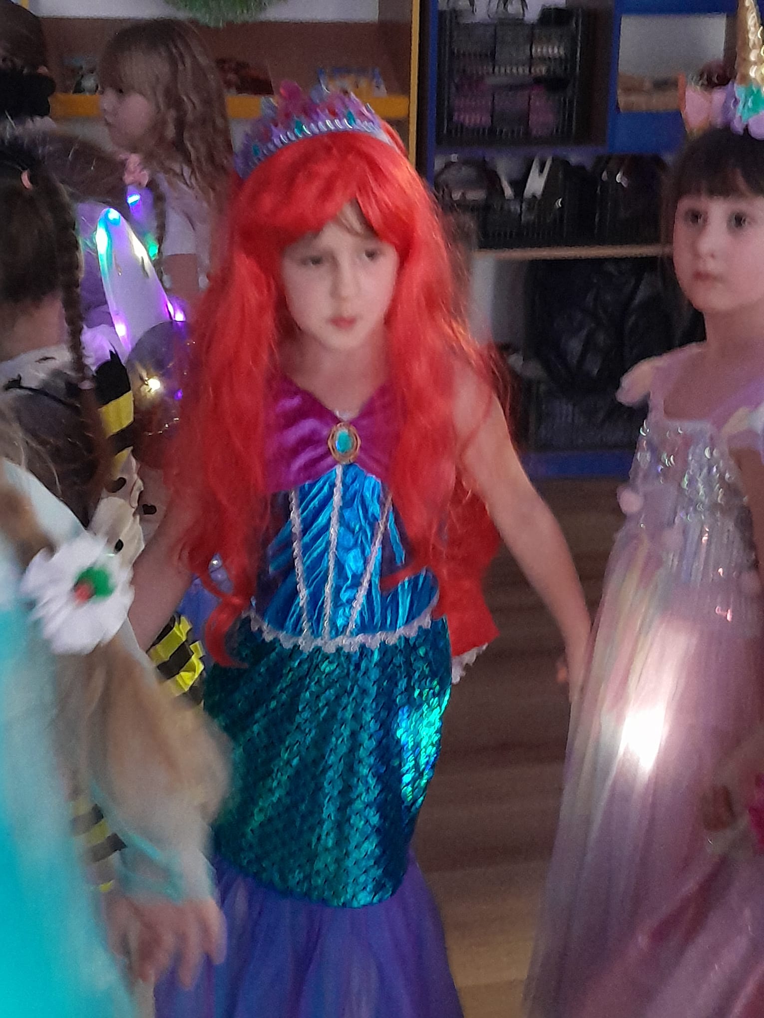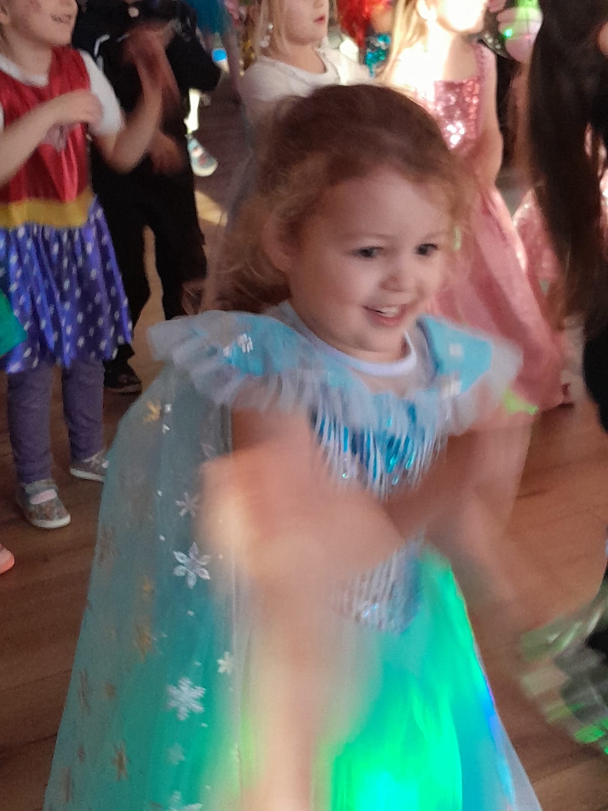 Z wielką radością brały one udział w tańcach i zabawach ruchowych. Nie zabrakło znanych i lubianych utworów, takich jak „Kaczuszki”, „Chocolate”, „Gummy Bear” oraz wesołych tańców-wygibańców. Śmiechu i uśmiechów było co niemiara. Bal był bardzo udany i na długo pozostanie w pamięci najmłodszych. 🎭🎶🫧